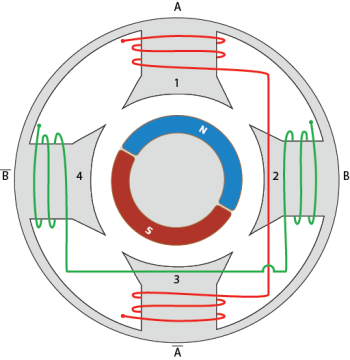 When the MotorType parameter for this axis is TwoPhaseACBrushless, set the value of the MotorPolePitch parameter to the number of poles of the rotary motor. In the figure that follows, the MotorPolePitch parameter should be set to 2.