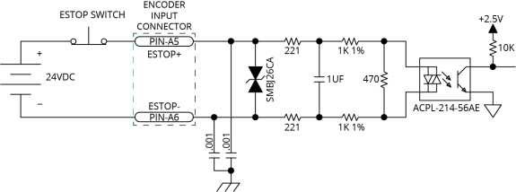 The ESTOP input is scaled for an input voltage of 12 - 24 volts.
