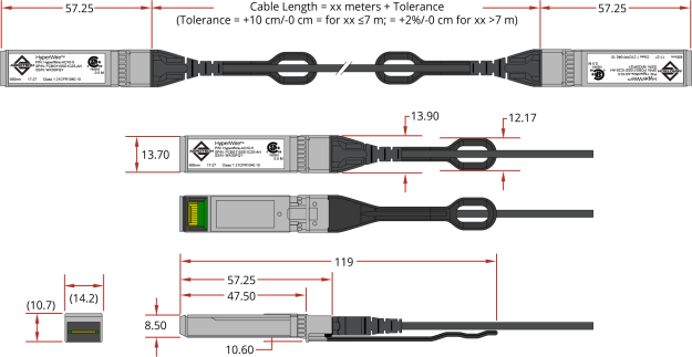 The cables are SFP+ active optical cables. The are designed for use in 10-Gigabit Ethernet links.
