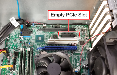 - Find an available PCIe slot, x4 or larger. If necessary, refer to your computer manual for information about available slots.