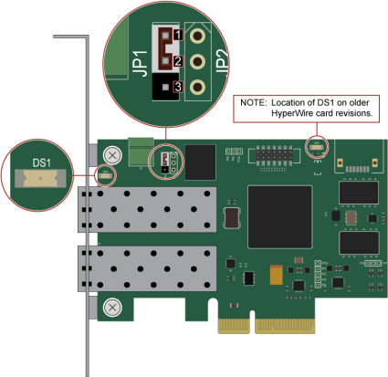 - For an older revision of the HyperWire board, remove the PC cover to view the DS1 LED.