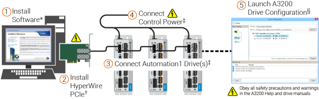† Refer to the Automation1 Help system: Get Started / HyperWire Communication / Install the HyperWire Card.