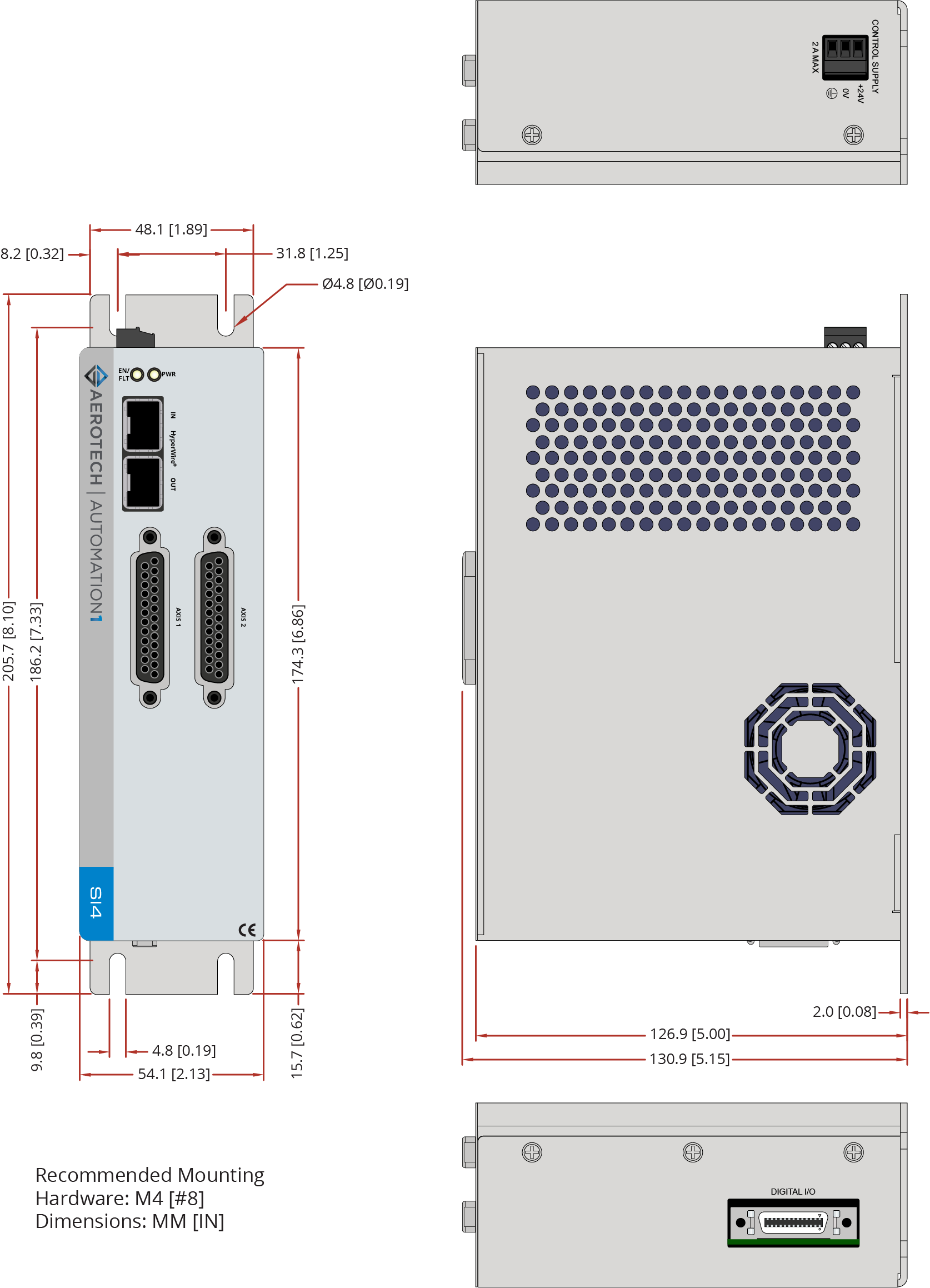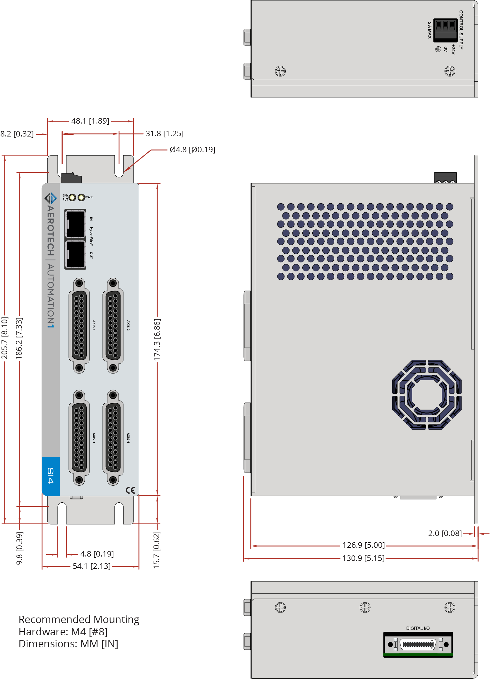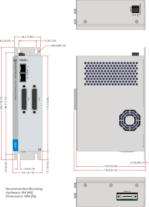 | Mounting Hardware | Standard | M4 [#8] screws (four locations, not included) |