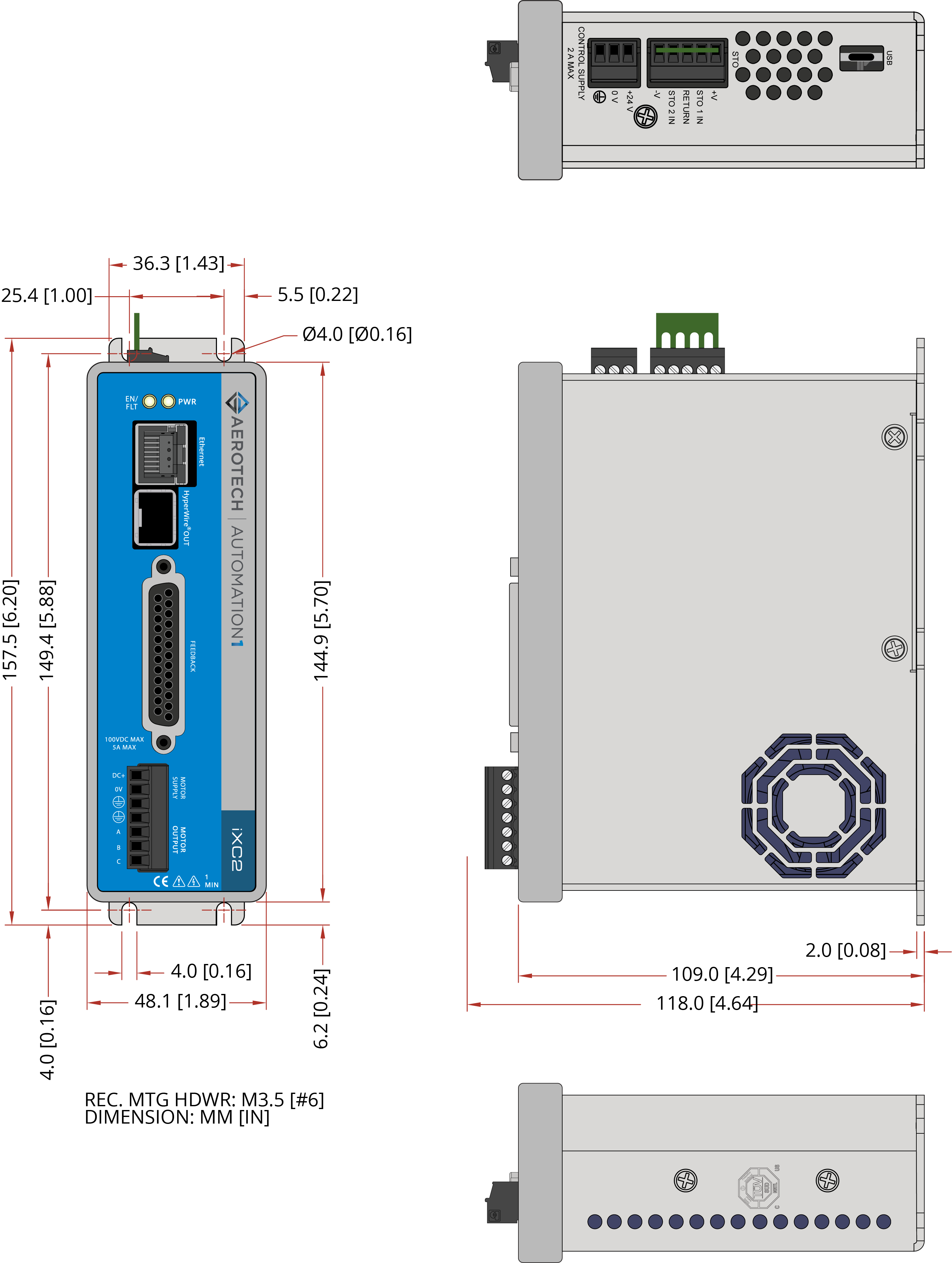 | Mounting Hardware | M3.5 [#6] screws (four locations, not included) | |