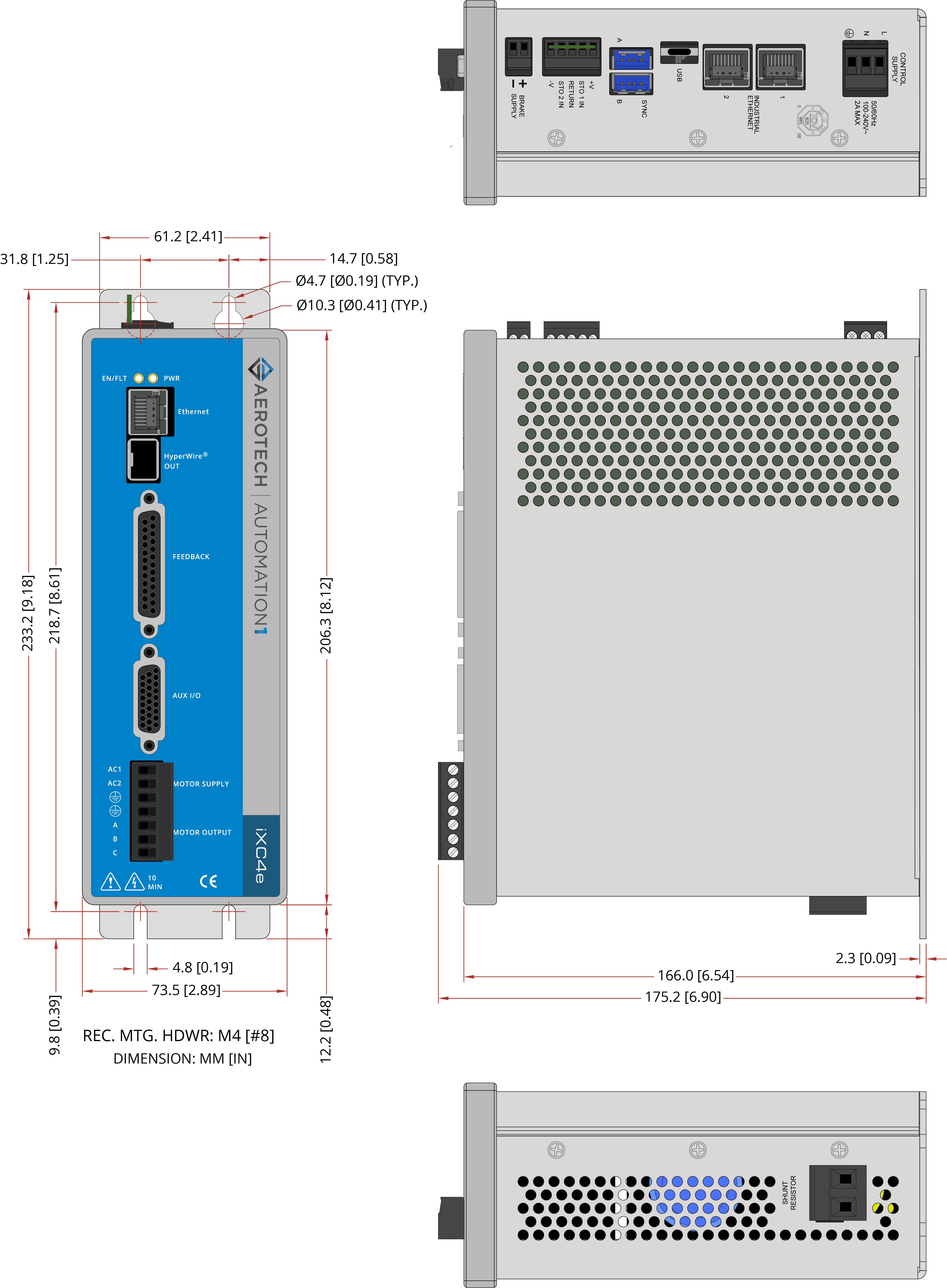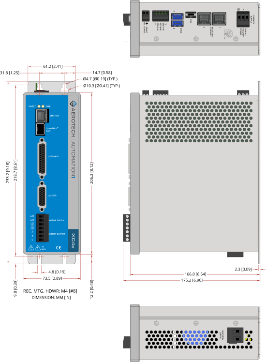 | Mounting Hardware | M4 [#8] screws (four locations, not included) | |