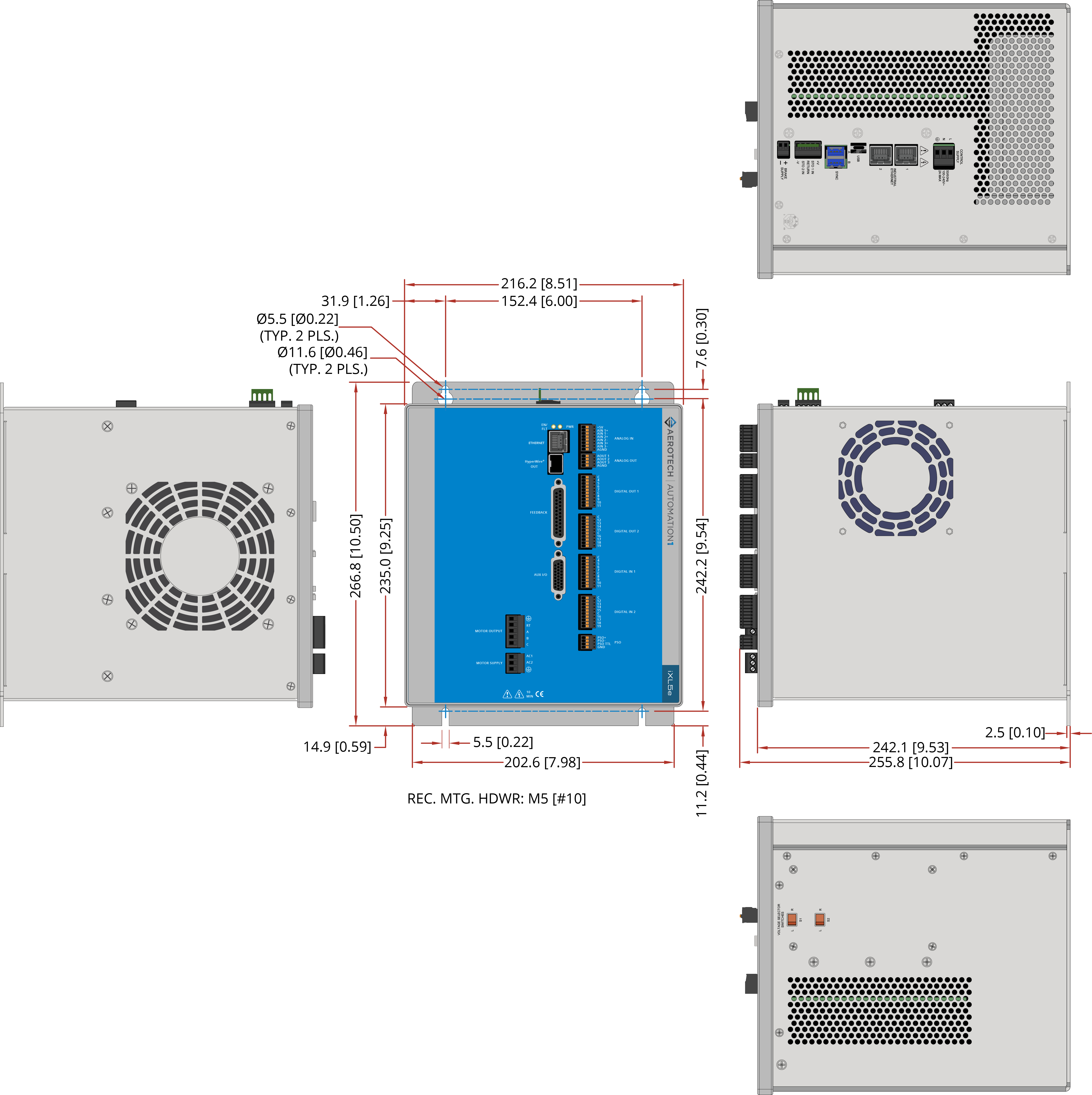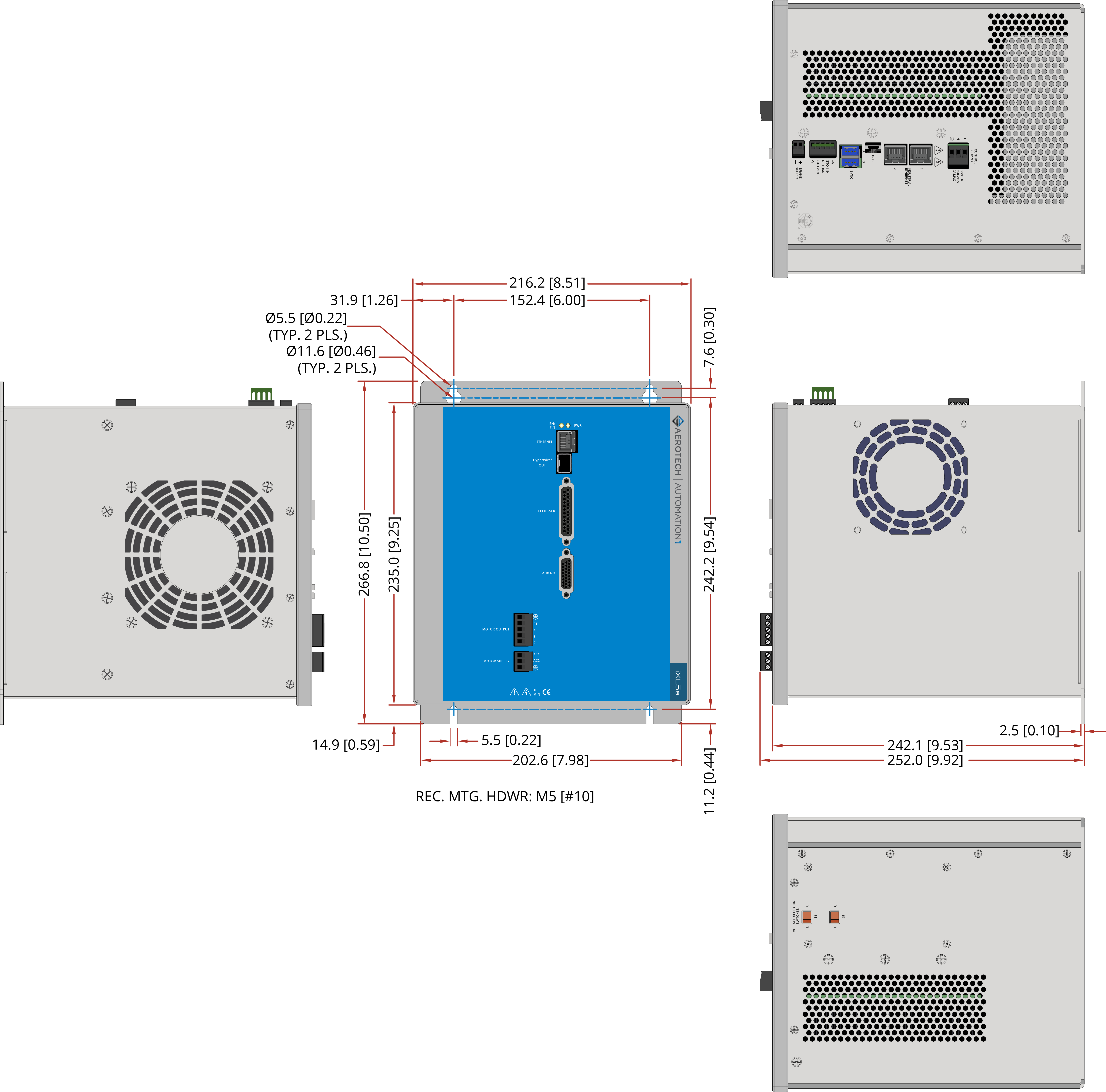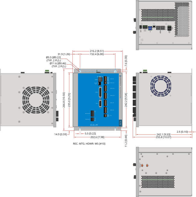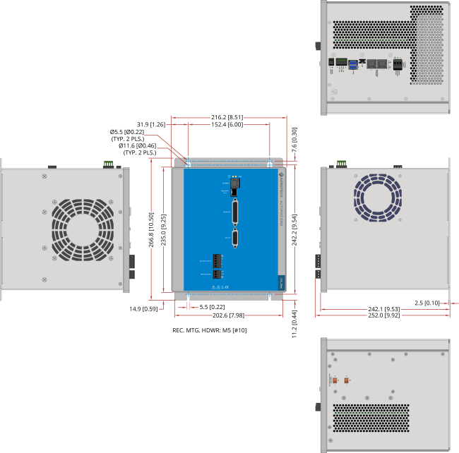 | Mounting Hardware | M5 [#10] screws (four locations, not included) | |