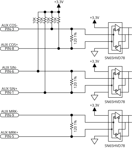 The drive rack accepts RS-422 square wave encoder signals. The drive rack will generate a feedback fault if it detects an invalid signal state caused by an open or shorted signal connection. Use twisted-pair wiring for the highest performance and noise immunity.
