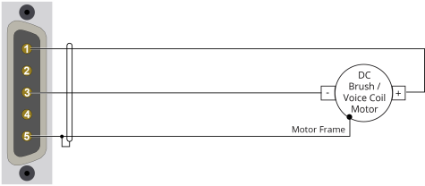The configuration shown in DC Brush/Voice Coil Motor Configuration is an example of a typical DC brush or Voice Coil motor connection. Refer to DC Brush/Voice Coil Motor Phasing for information on motor phasing.